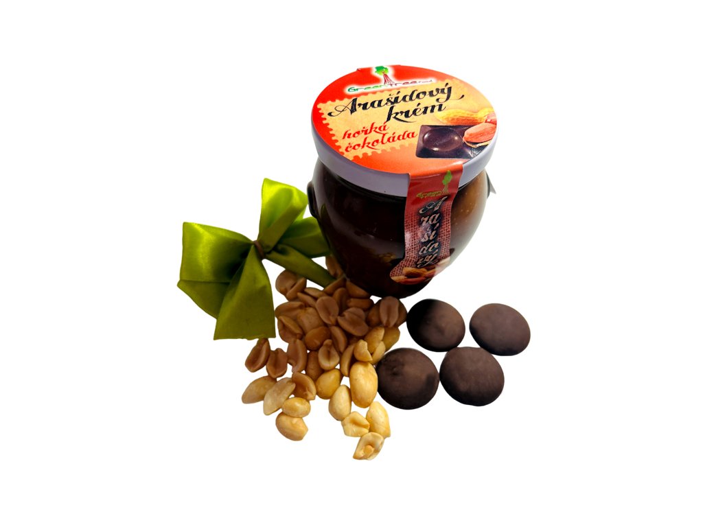 Arašídový krém je skvělým zdrojem bílkovin a zdravých přírodních tuků. Bez umělých konzervantů, bez přidaného cukru. Obsahuje přes 20% skvělé belgické hořké čokolády . Je vyráběn z pražených či nepražených arašídů. Arašídový krém patří v mnoha domácnostech přímo do spíže, protože se skvěle maže na chléb. Použijte ho i pro domácí pečení. Lze jej mlsat jen tak lžičkou nebo jej použít na palačinky či do koláčů. Fantazii se meze nekladou :-).
