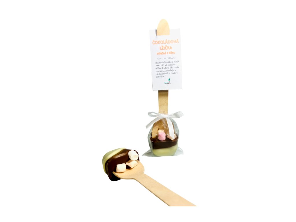 Čokoládová LŽIČKA mléčná-bílá s maršmelouny
