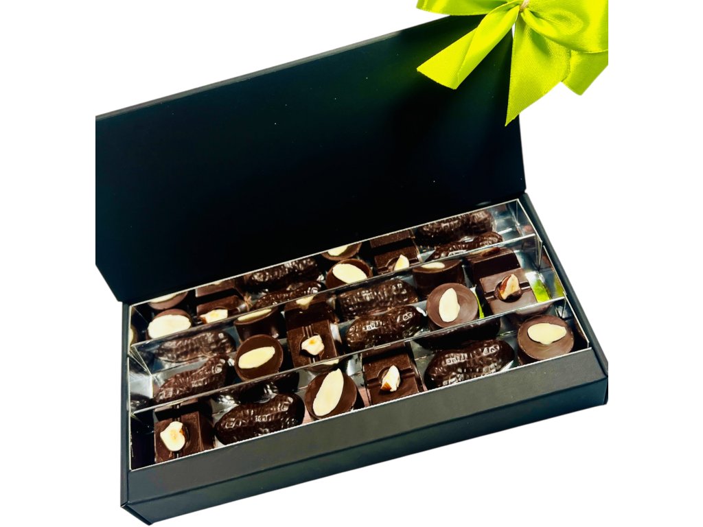 Tři druhy ořechových pralinek v hořké čokoládě. Jako vždy veškeré náplně vyrobeny u nás.