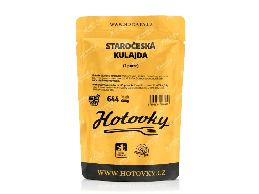 Složení v okamžiku zpracování: brambory , vejce, smetana, rýžová mouka, kopr, směs hub, vývar (kapusta, mrkev, celer, petržel, libeček, česnek), máslo, citron, sůl, kmín. Může obsahovat stopy lepku.